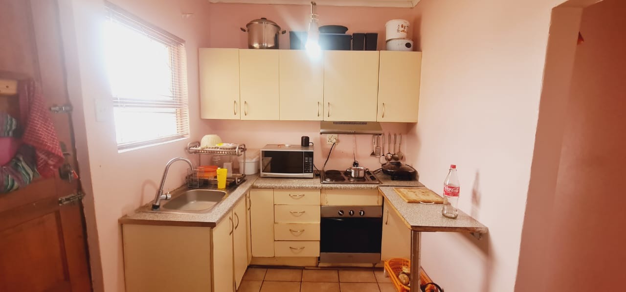 Come on in and check out this 3-bedroom, 1-bathroom home in Kwadwesi, Port Elizabeth! Inside, you'll find a comfy lounge and a functional kitchen, all with durable tiled flooring. The living area gets plenty of natural light, and while some of the decor, like the pink walls, offers a unique vibe, it's also a fantastic canvas for you to add your personal flair and make it truly yours. The kitchen is practical with cabinets, an oven, hob, and even a handy fold-down counter for extra space. One of the bedrooms even boasts a cool exposed brick accent wall, adding a touch of character.
