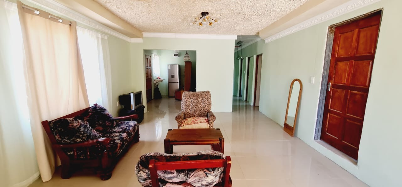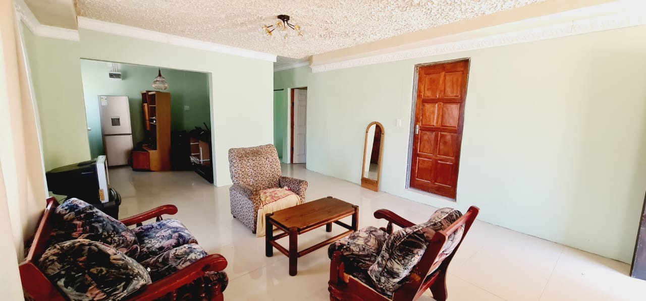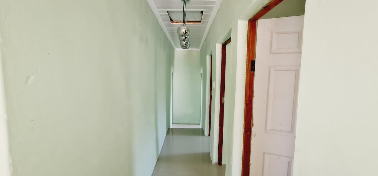 Inside, the home presents a fresh and clean aesthetic with freshly painted light green walls and modern tiled flooring throughout the living areas. It comprises a comfortable lounge, a dedicated dining room, and a functional kitchen, providing a practical layout for daily living and entertaining.