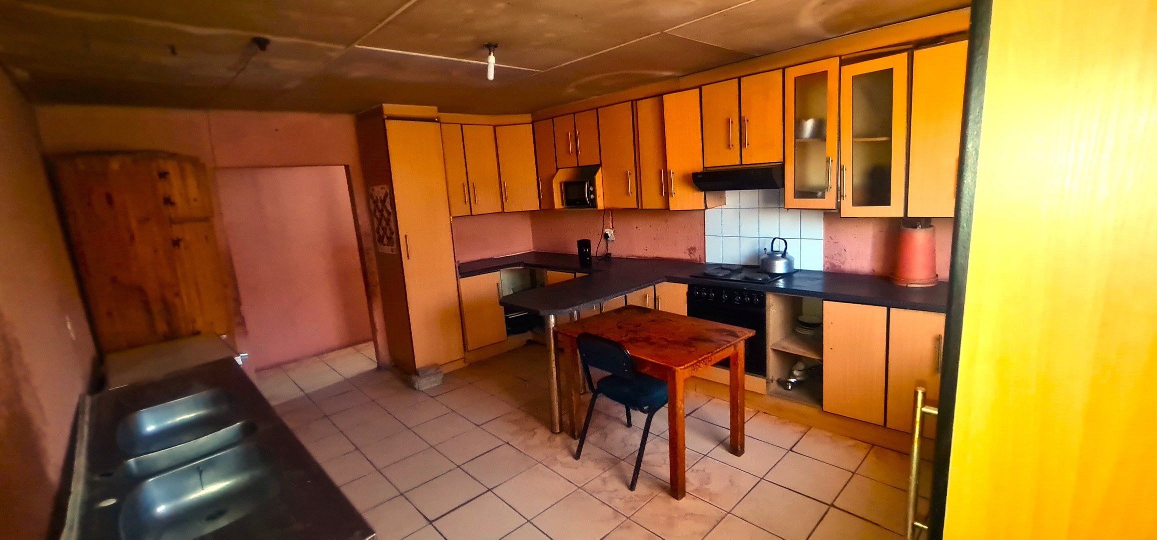 This is a comfortable family home with 4 bedrooms and 2 bathrooms, the main has an en suite , big kitchen with bic's and a spacious living room, the house needs a tlc. It has a double garage and there is a boundary wall.