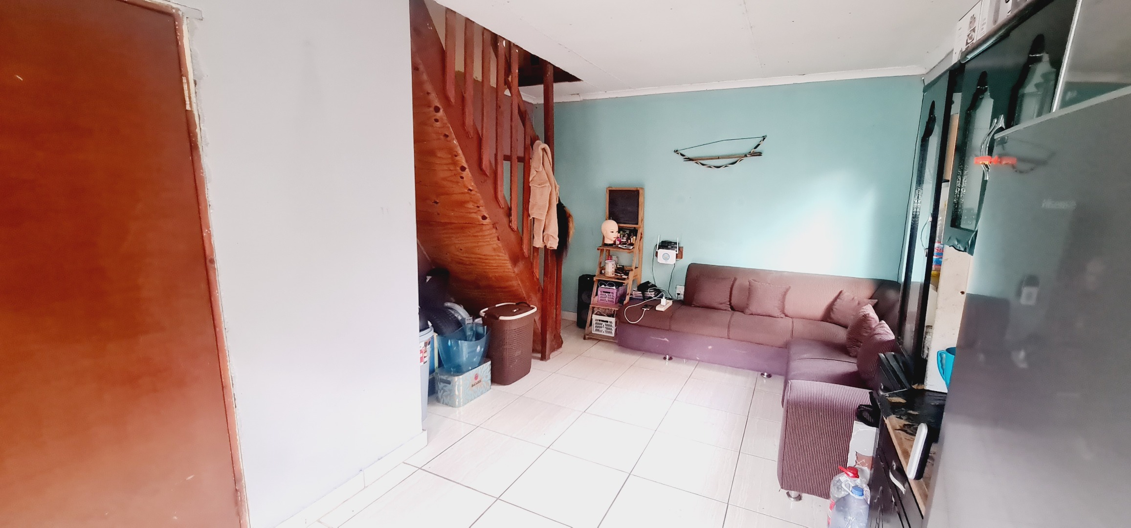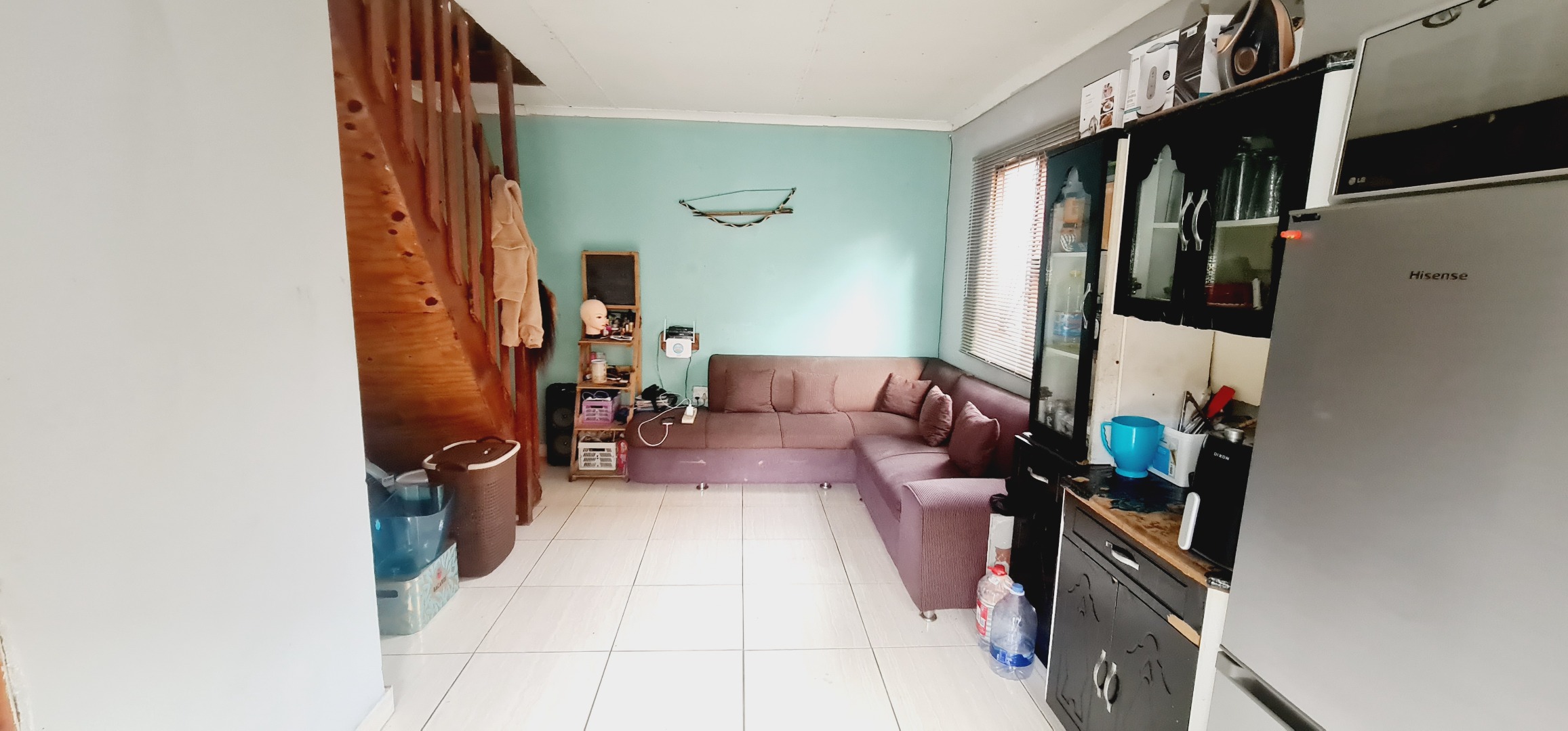 * Compact living area with tiled flooring