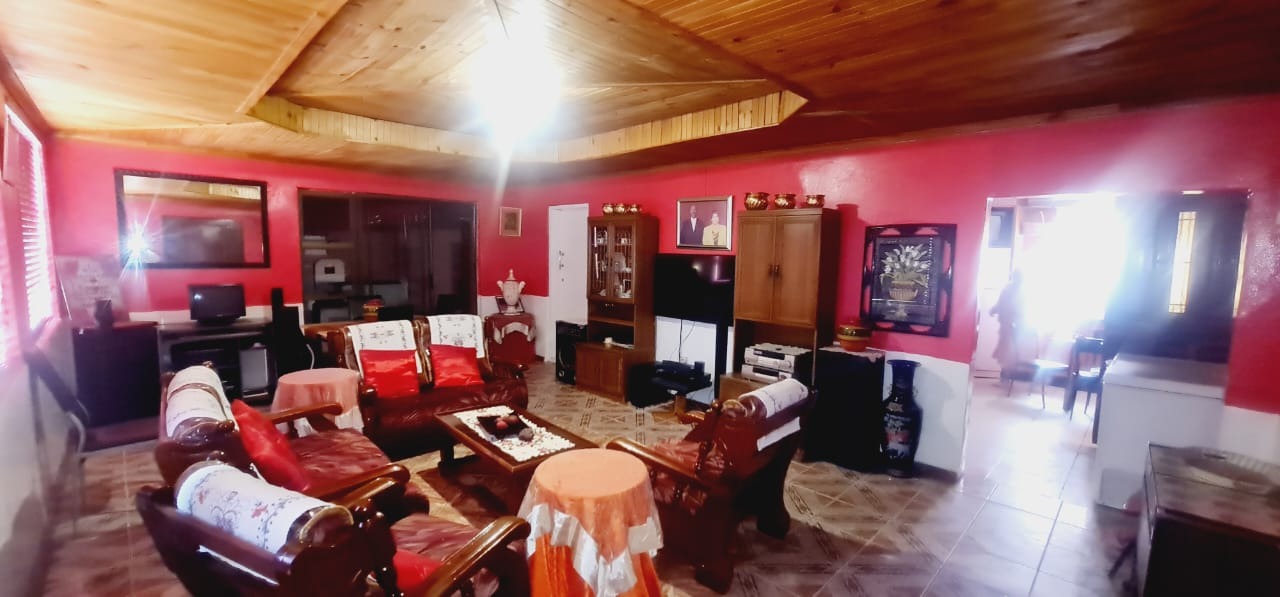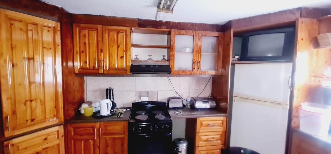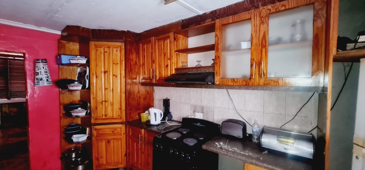 It features a solid brick exterior with security bars and a pedestrian gate for peace of mind, plus large vehicle access gates. Inside, you'll find a spacious lounge with bold red walls and a unique wooden slatted ceiling, complemented by tiled flooring. The kitchen is practical, offering ample wooden cabinetry, a stove, and a range hood. With two comfy bedrooms and a neat bathroom, it's perfect as a starter home. Located in the vibrant Kwazakhele area, this property offers a great opportunity to settle down in Port Elizabeth.