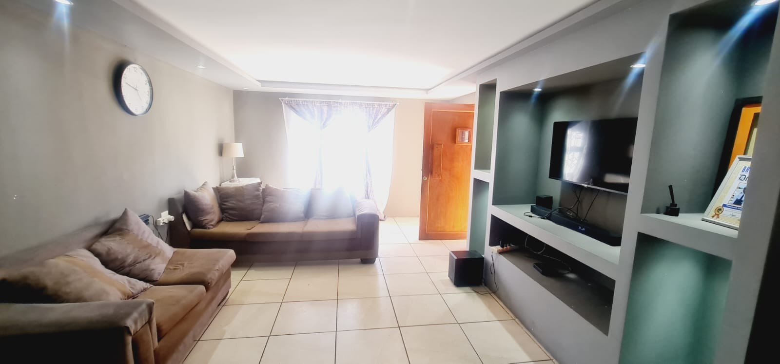 3-bedroom home in Kwazakhele, offering a comfortable and secure living space. From the moment you arrive, you'll appreciate the well-maintained exterior, complete with a perimeter wall and security gates, ensuring peace of mind. The property also features a visible solar water heater, a thoughtful touch for energy efficiency.