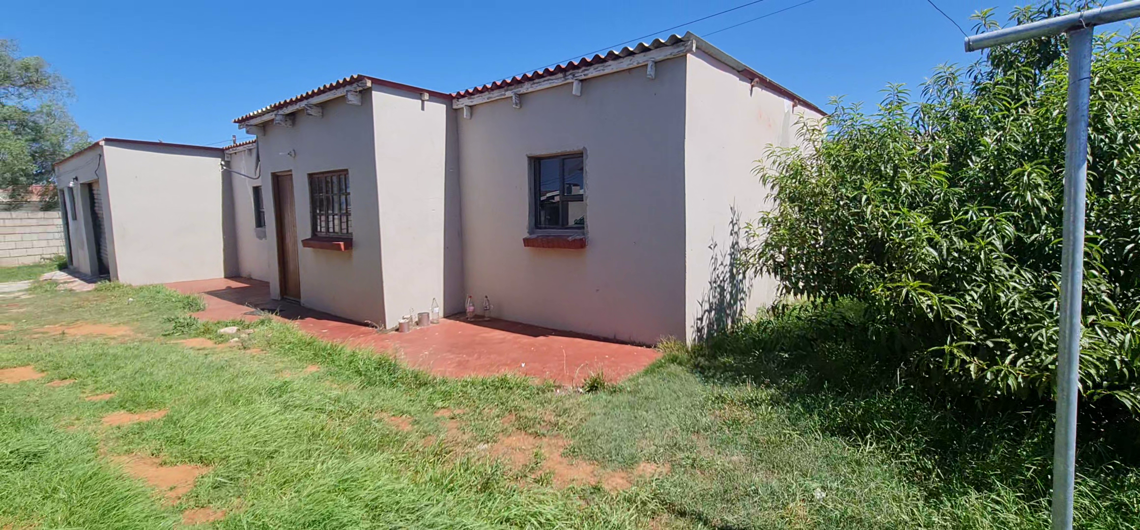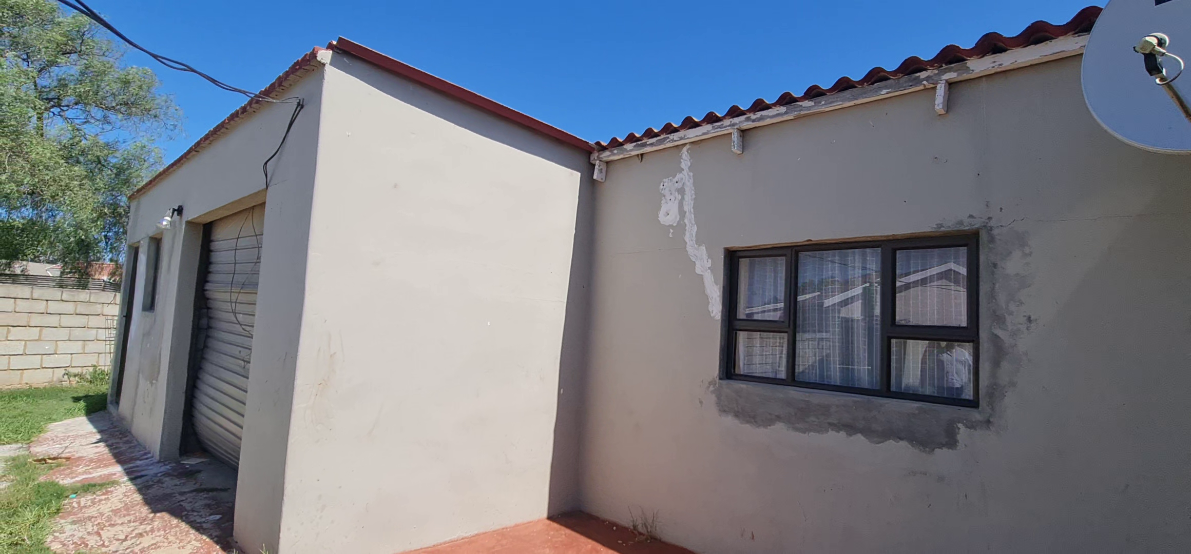 Additionally, there is a family bathroom. The property includes two flatlets; the second flatlet offers two bedrooms, a kitchenette, and a bathroom, along with a single garage. Security is a priority, with burglar gates and brick boundary walls enclosing the property. Conveniently located near various amenities, this home is a must-see.
