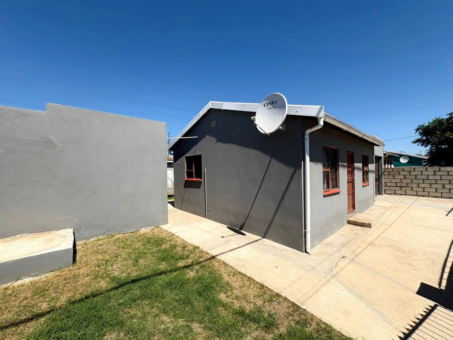 This neat and well-maintained 2-bedroom home offers comfort, convenience, and great value. The property features a modern grey finish inside and outside, creating a clean and stylish look. As you enter, you are welcomed by an open-plan living area, while the home is fully tiled throughout for easy maintenance. One bedroom features wooden flooring, adding warmth and character. Both bedrooms are well-sized and filled with natural light. The property also includes a single garage, a flatlet, and an outside toilet for added practicality. The fully enclosed yard with a metal gate offers privacy and security, making this move-in ready home ideal for a small family.