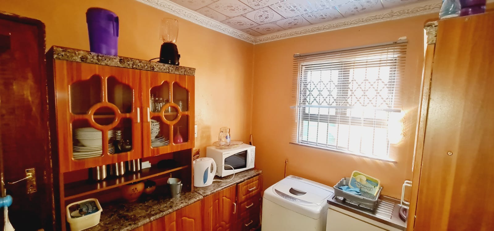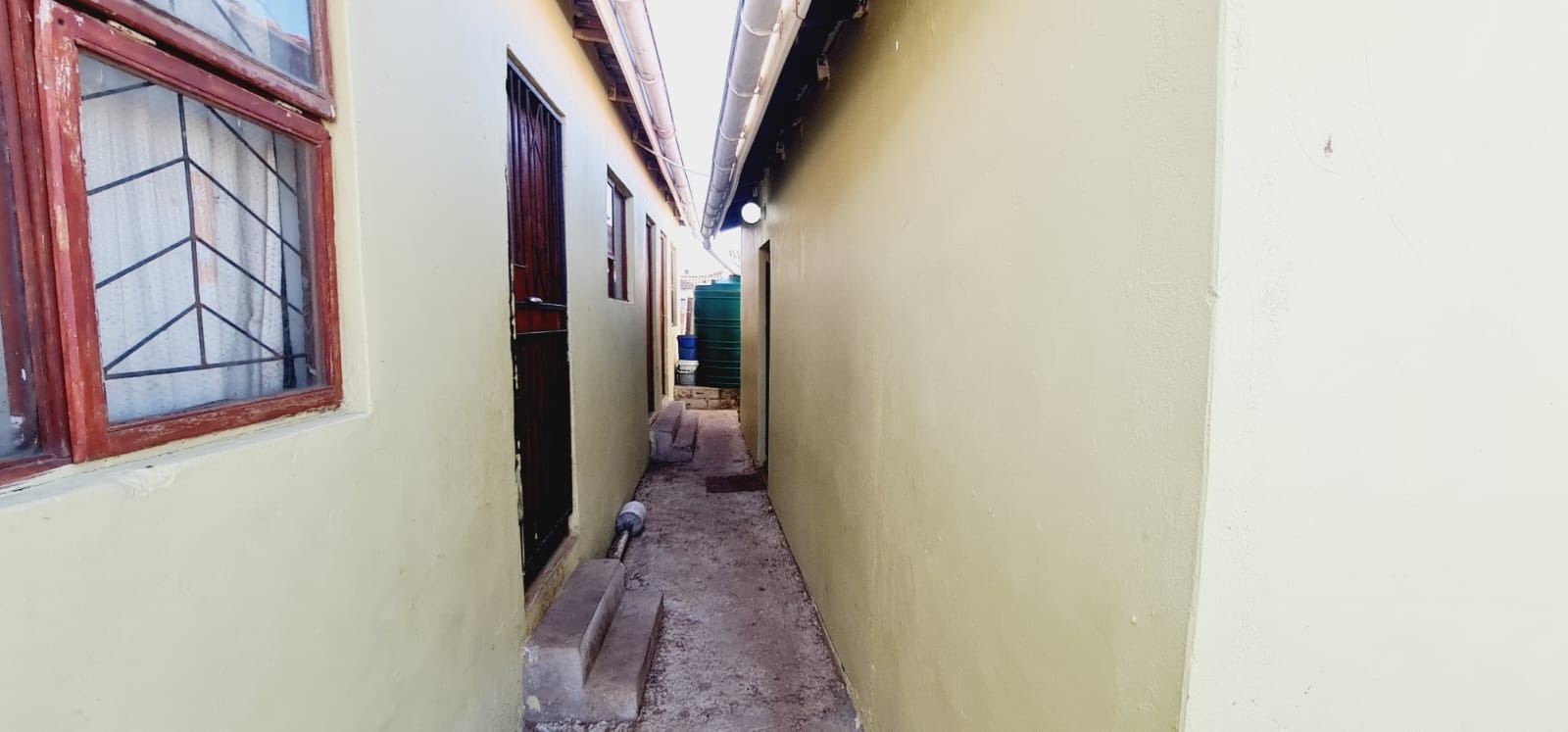 Come on in and discover this charming 2-bedroom home in Tjoksville, Port Elizabeth! Right from the start, you'll notice its neat, light yellow exterior and classic red-tiled roof, giving it a welcoming vibe. The covered front porch with its decorative pillars is a lovely spot to relax, and you'll feel secure with the burglar bars on the windows and the main sliding door.