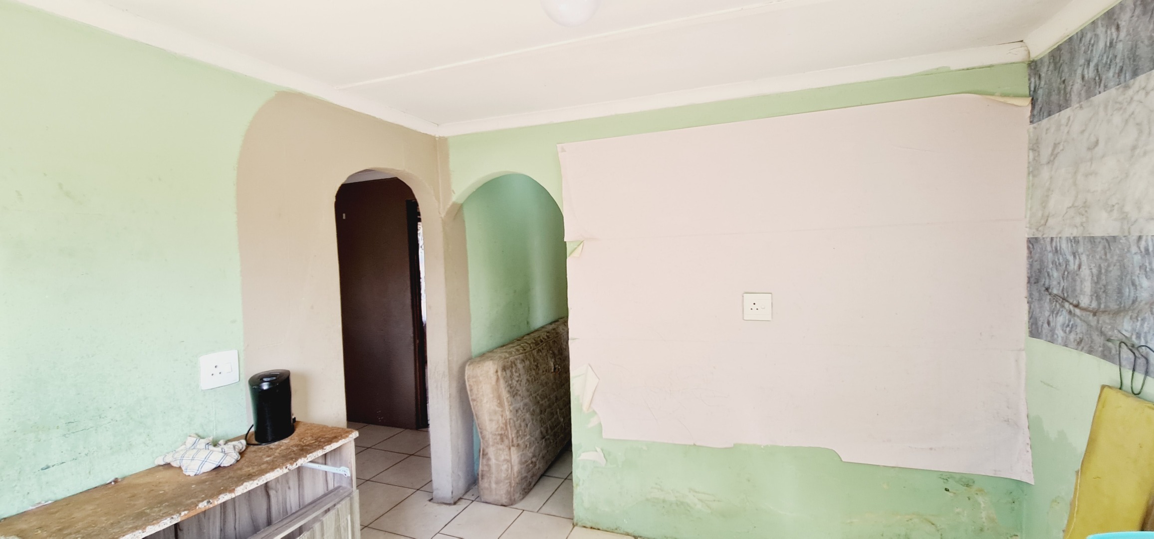 This inviting 2-bedroom, 1-bathroom home offers a practical layout with a lounge and a functional kitchen space. Easy-care tiled floors throughout make living convenient, and while some areas need a little TLC, the property is a blank canvas ready for your personal touch.