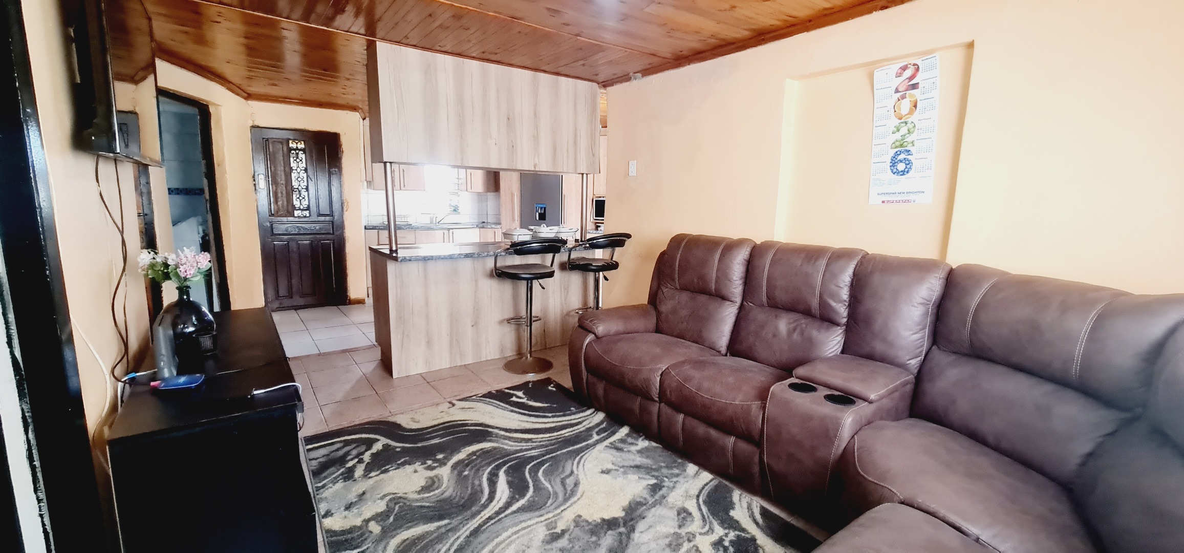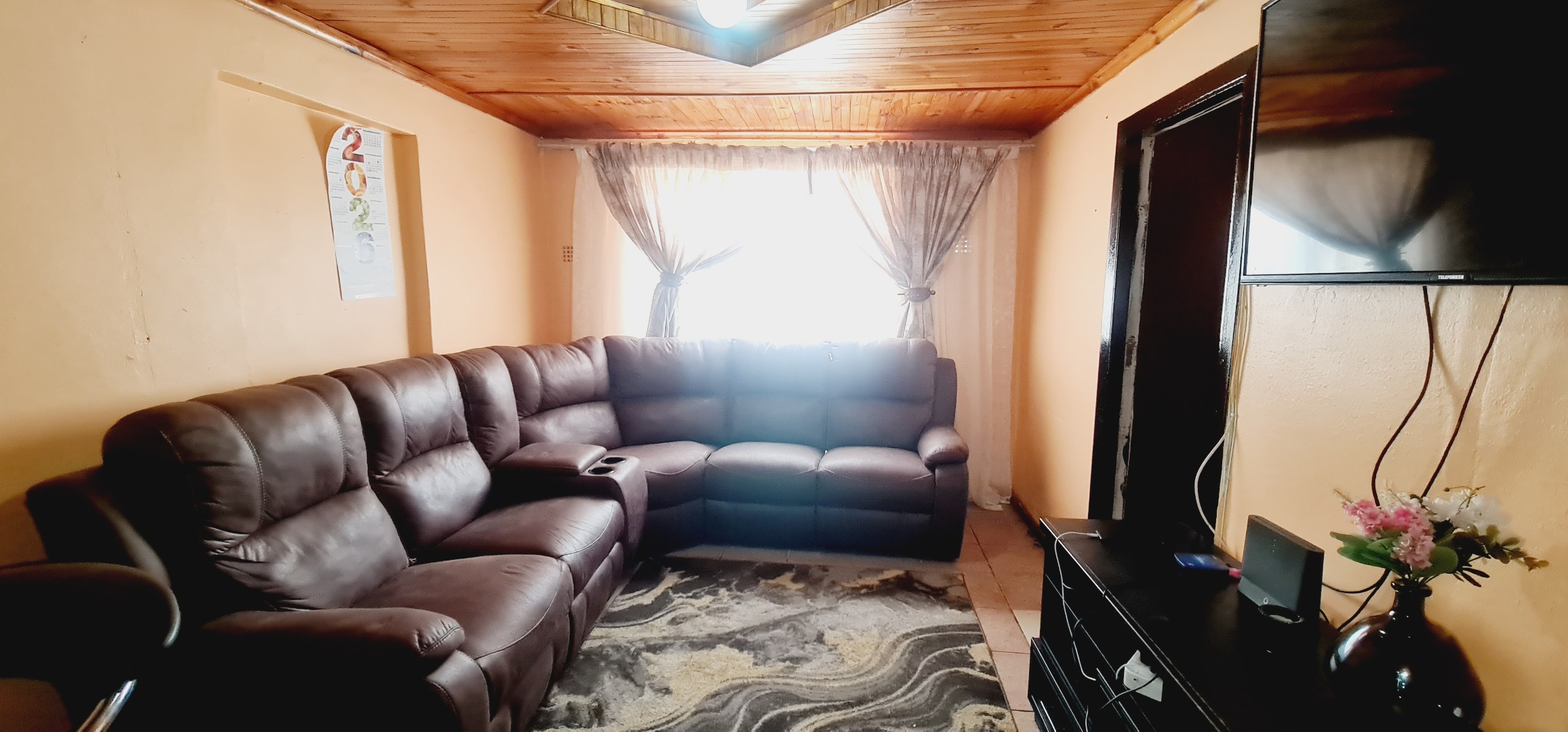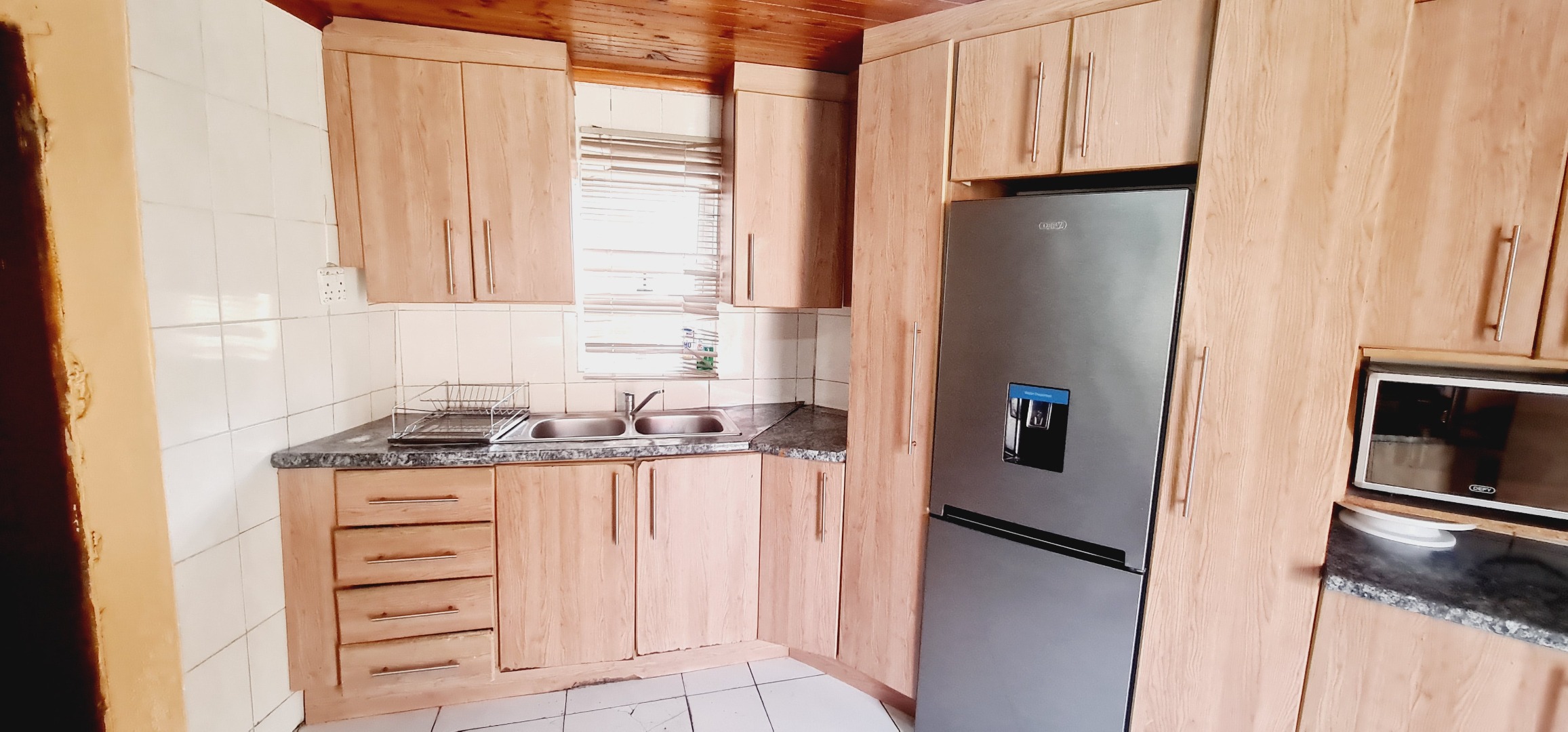 The property comprises two bedrooms, a lounge, a fitted kitchen, a bathroom, and includes a flat enclosed with boundary walls.