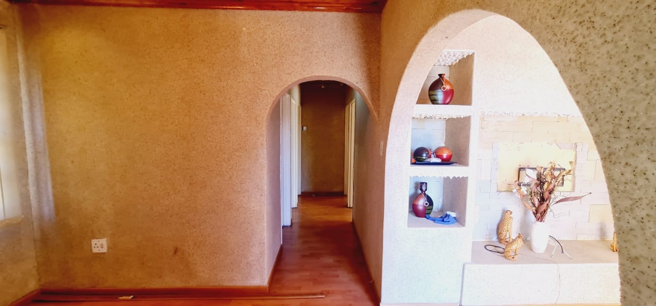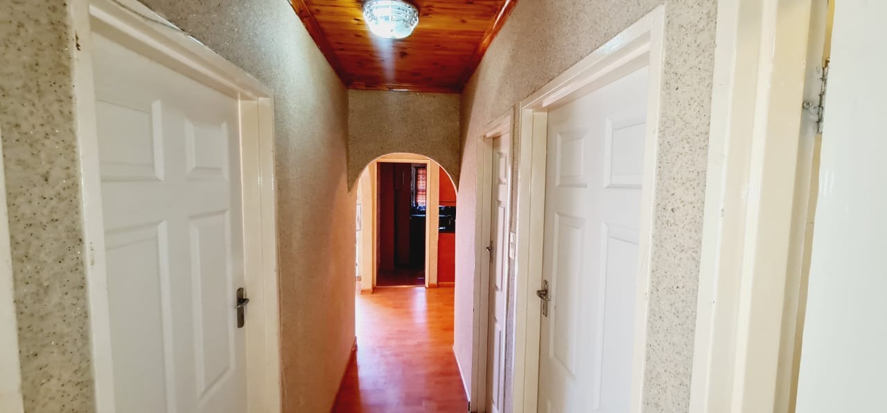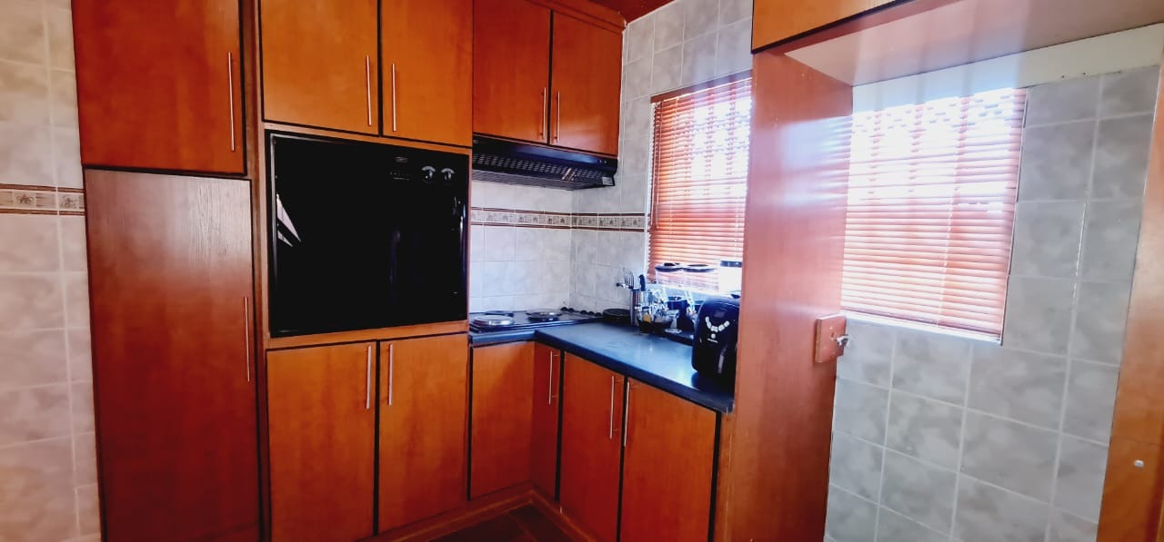 Well secured property, offers a practical and comfortable living environment. The residence features three well-proportioned bedrooms, including a primary bedroom complete with an en-suite bathroom. An additional bathroom serves the remaining two bedrooms, ensuring convenience for all occupants. The interior layout is thoughtfully designed, presenting a dedicated lounge and dining room area (with built-in wall unit), and a functional kitchen (with hob, elo, and extractor fan). This configuration is ideally suited for families or professionals seeking a private dwelling.